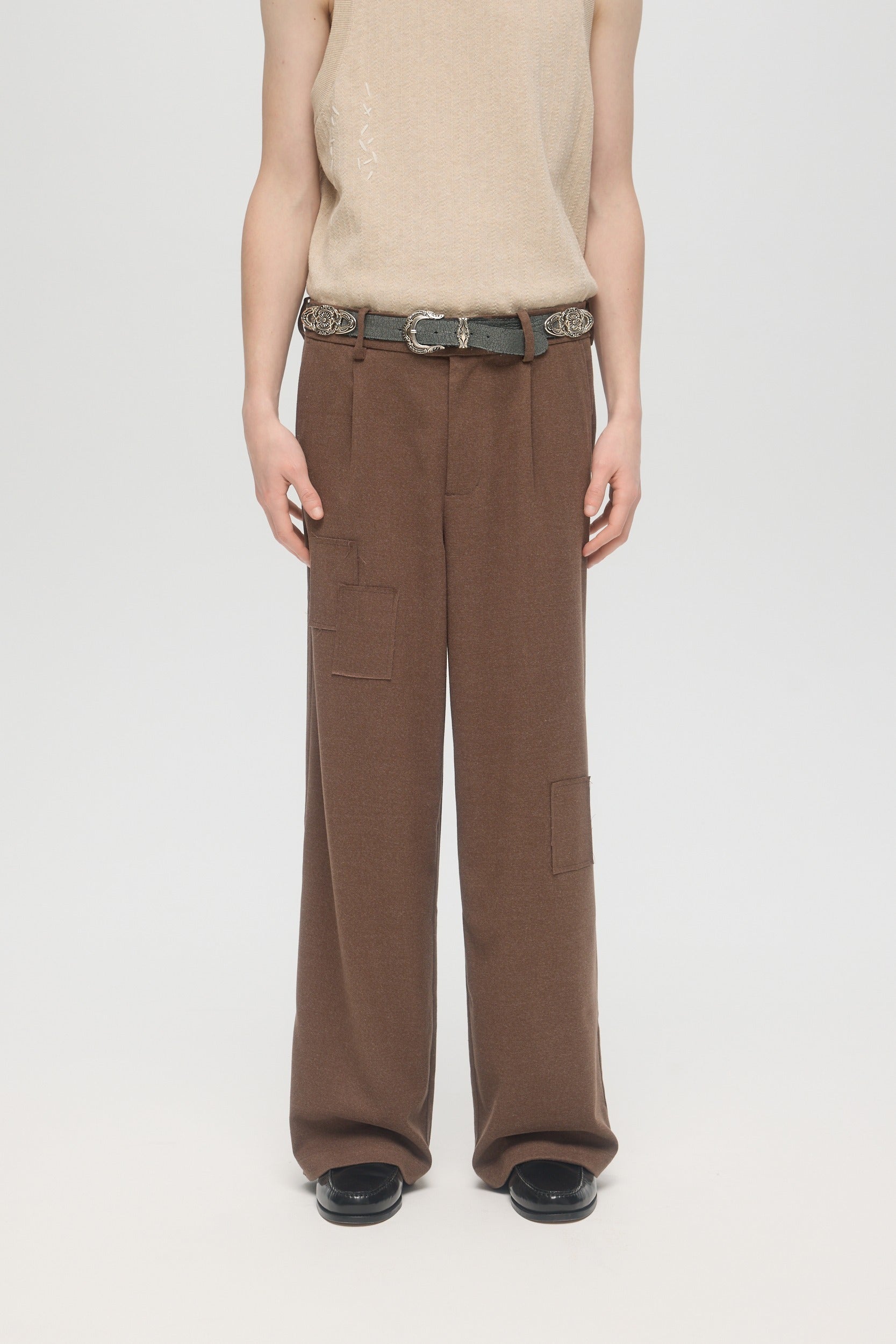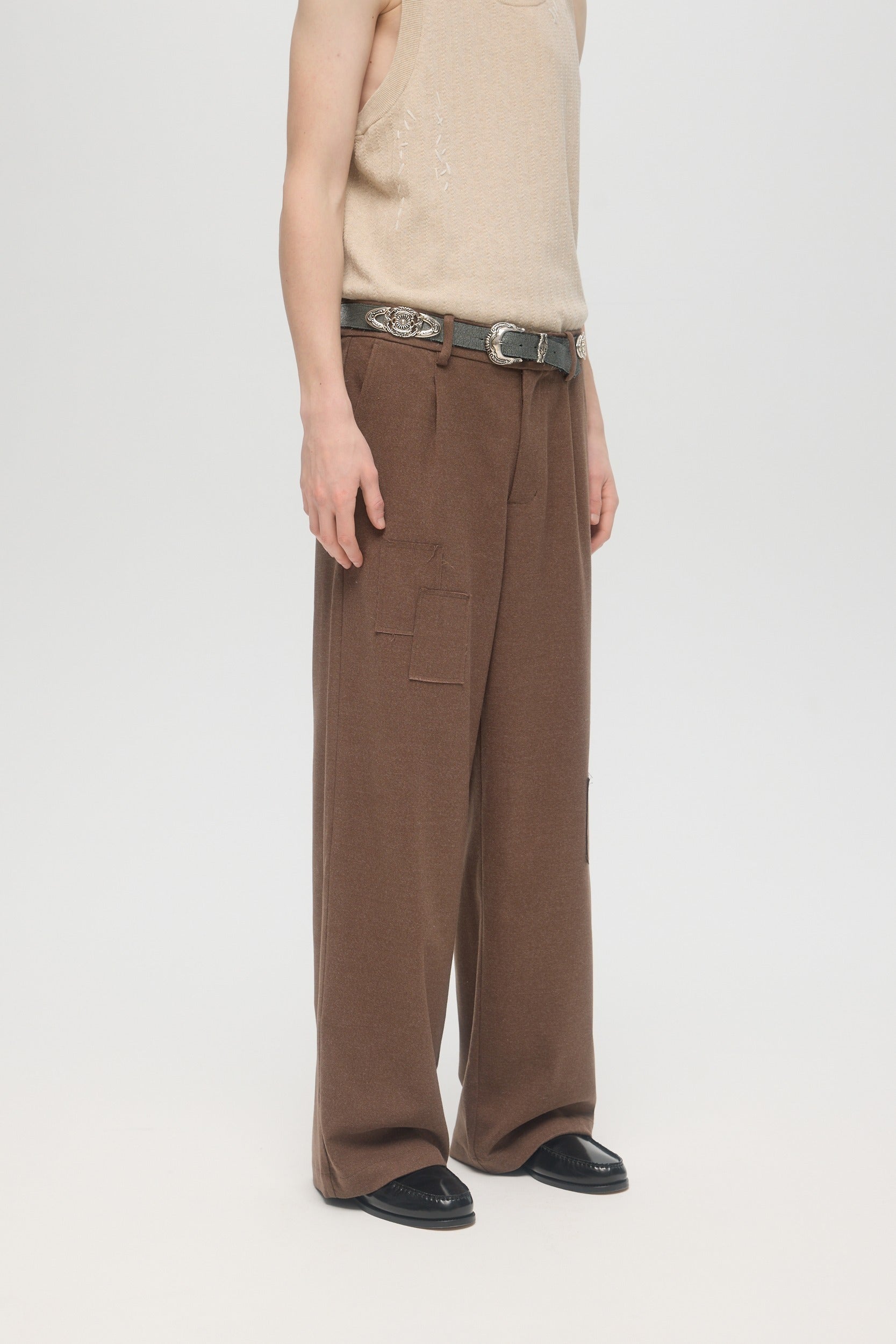 The Resort tailored trousers are relaxed-fit and versatile for year-round wearability, cut in a soft but sturdy textile. Self-fabric patches in tone-on-tone featured throughout, with zip fly and DOMREBEL embroidered branding at back pocket. Fits relaxed and true to size.