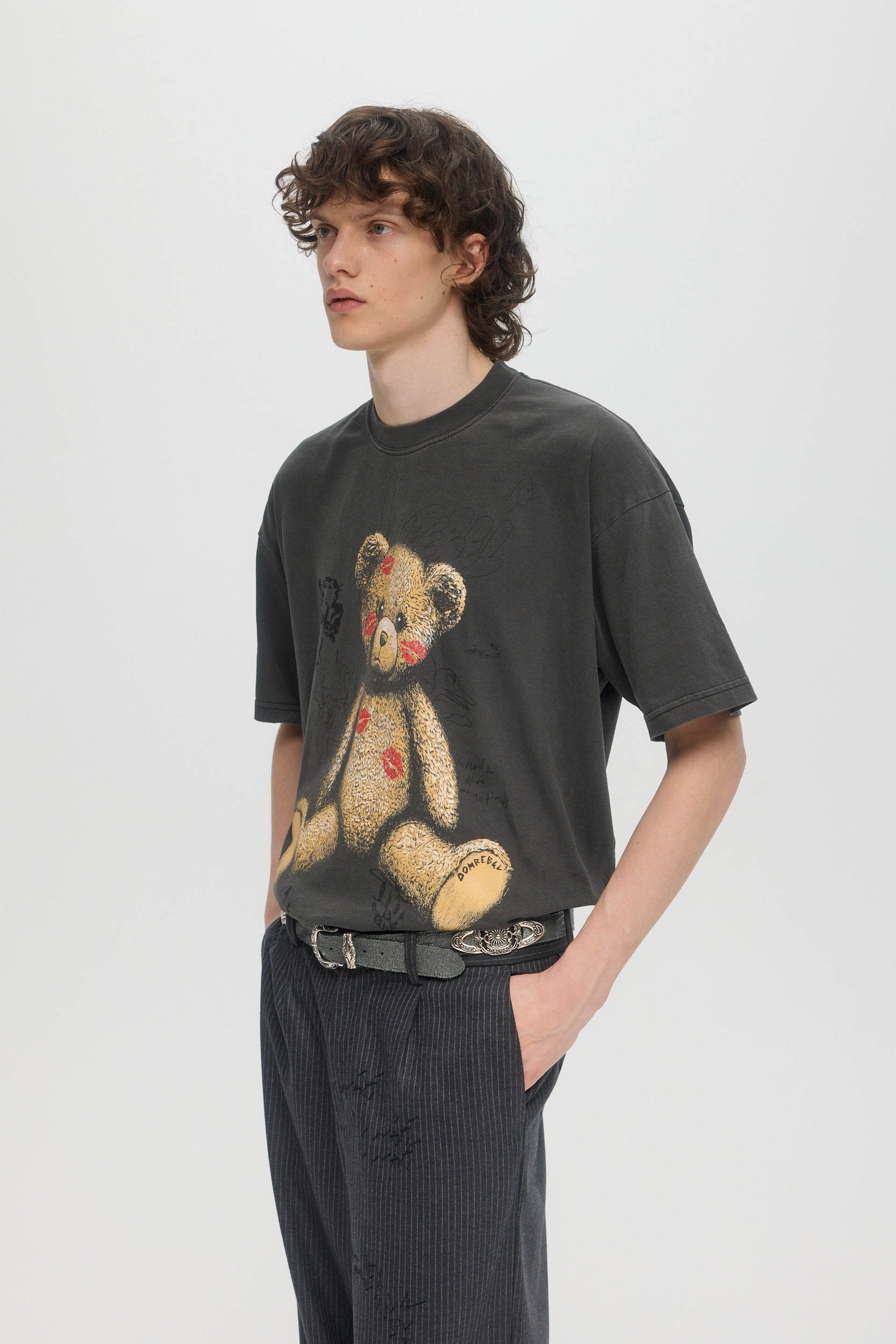 Our crowd-favorite t-shirt fit is made from custom cotton jersey, milled and constructed in Canada. Original DOMREBEL hand-drawn artworks screen-printed on front and back. We built this fit with a higher, cleaner rib neckline, and a very slight drop in the shoulder for the perfect fit. Fit is regular and true to size. Heavy vintage wash process.