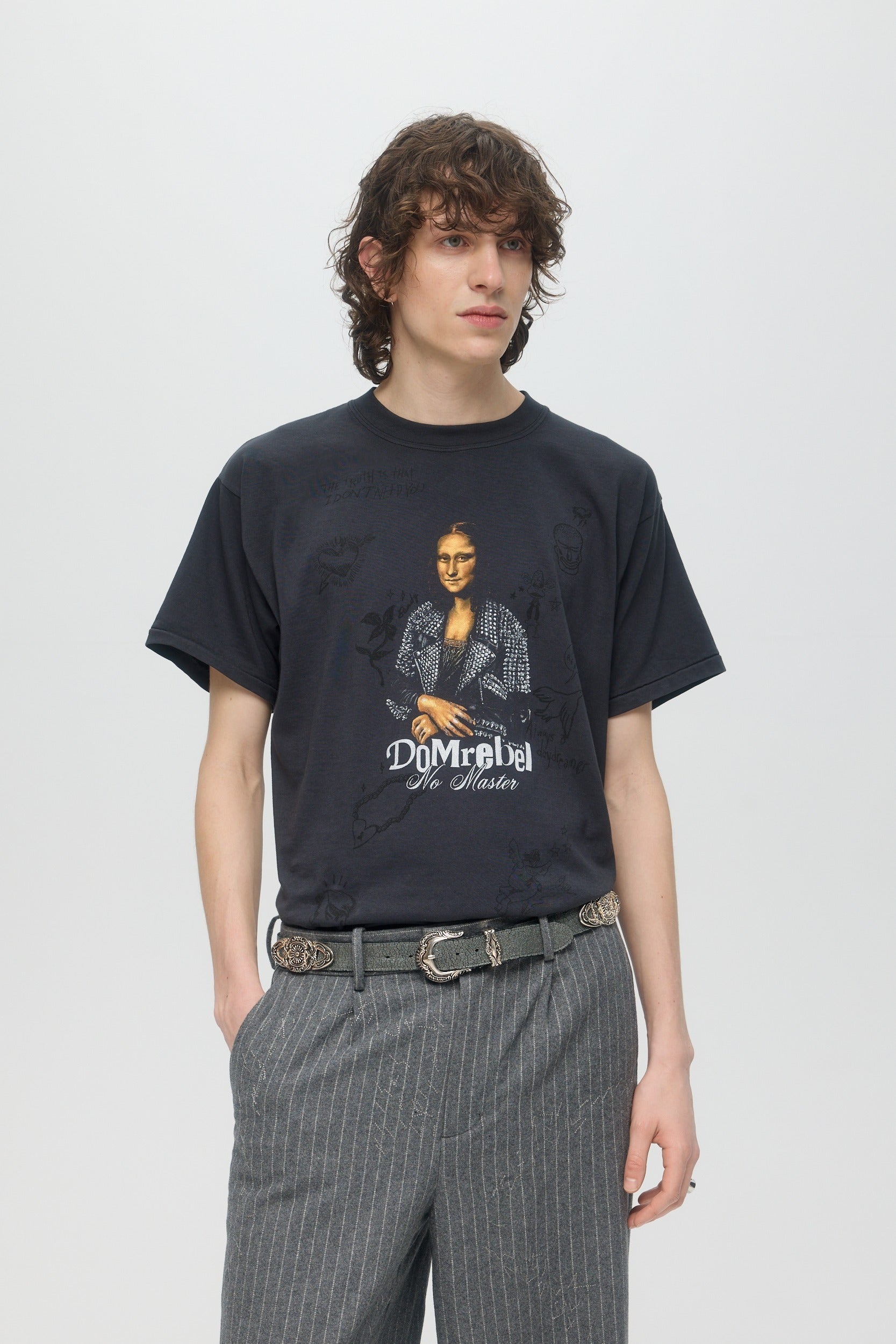 Our crowd-favorite t-shirt fit is made from custom cotton jersey, milled and constructed in Canada. Original DOMREBEL hand-drawn artworks screen-printed on front and back. We built this fit with a higher, cleaner rib neckline, and a very slight drop in the shoulder for the perfect fit. Fit is regular and true to size.