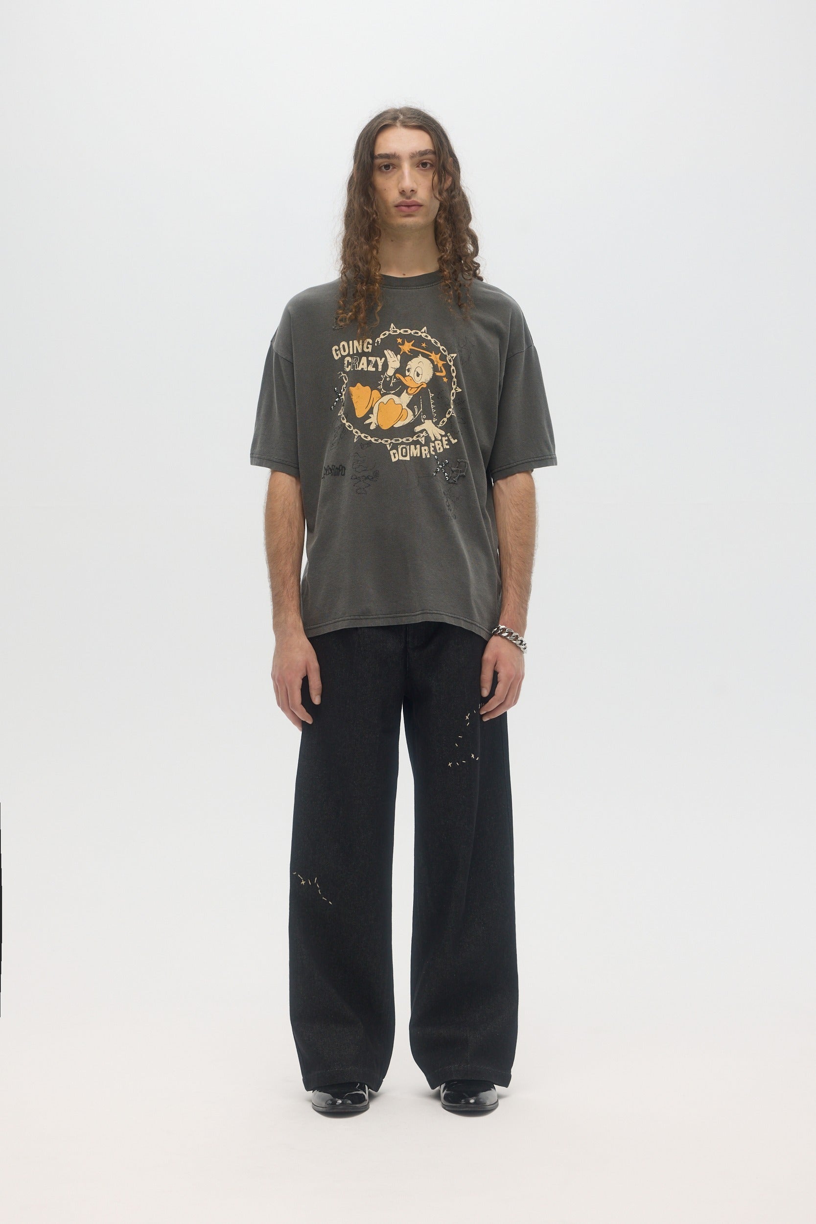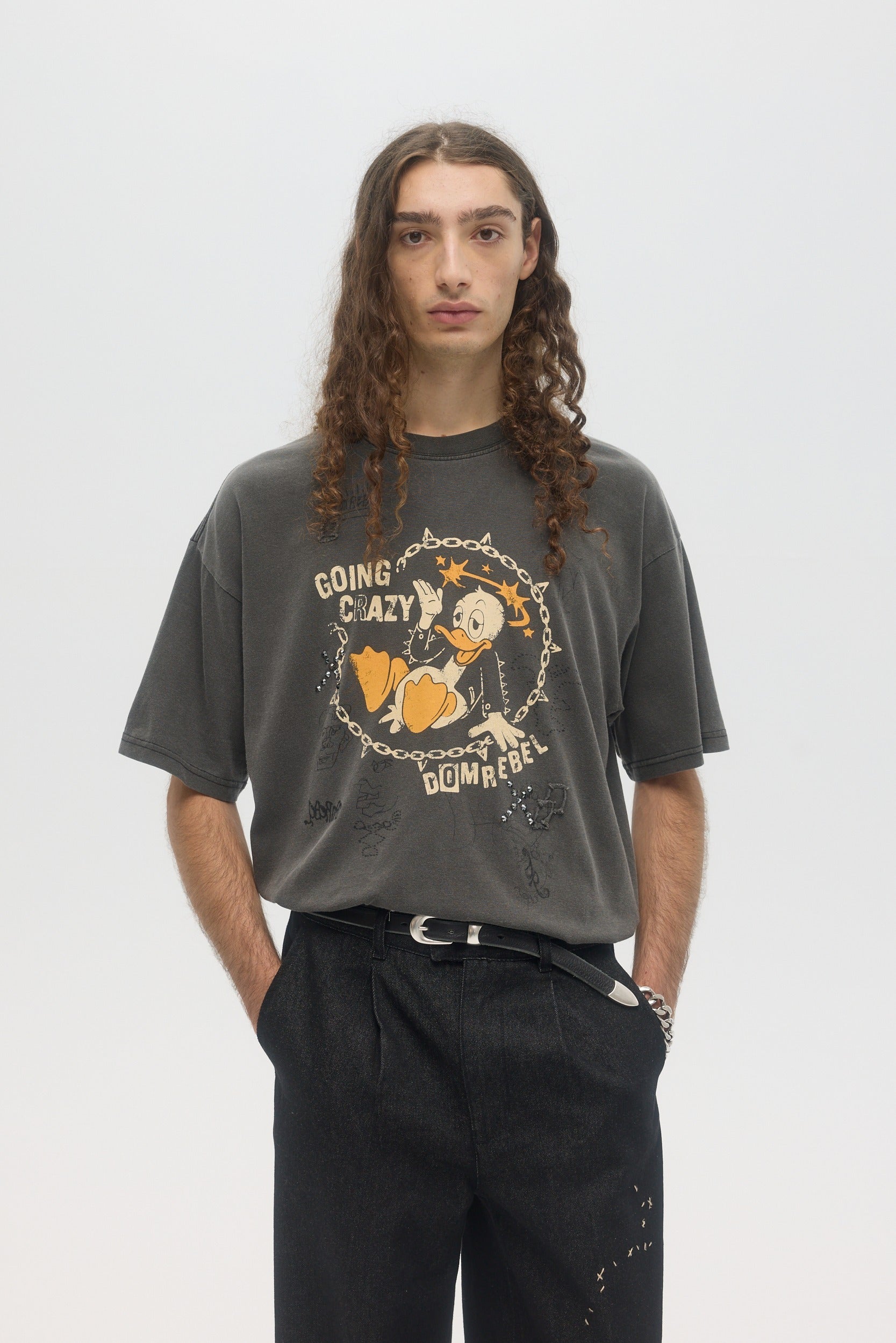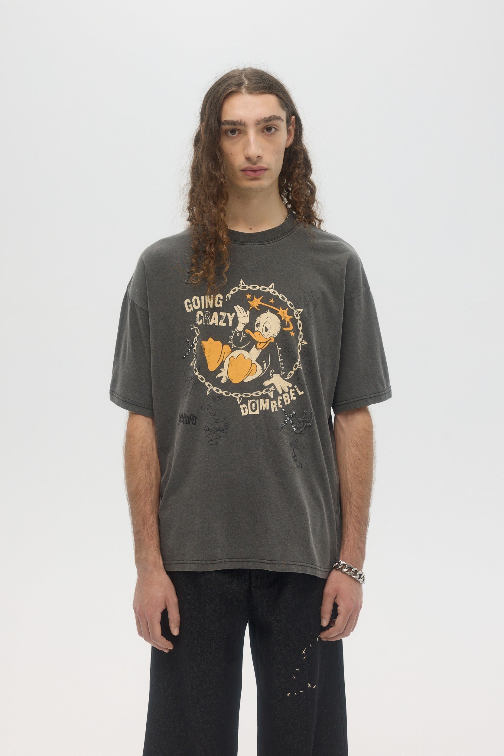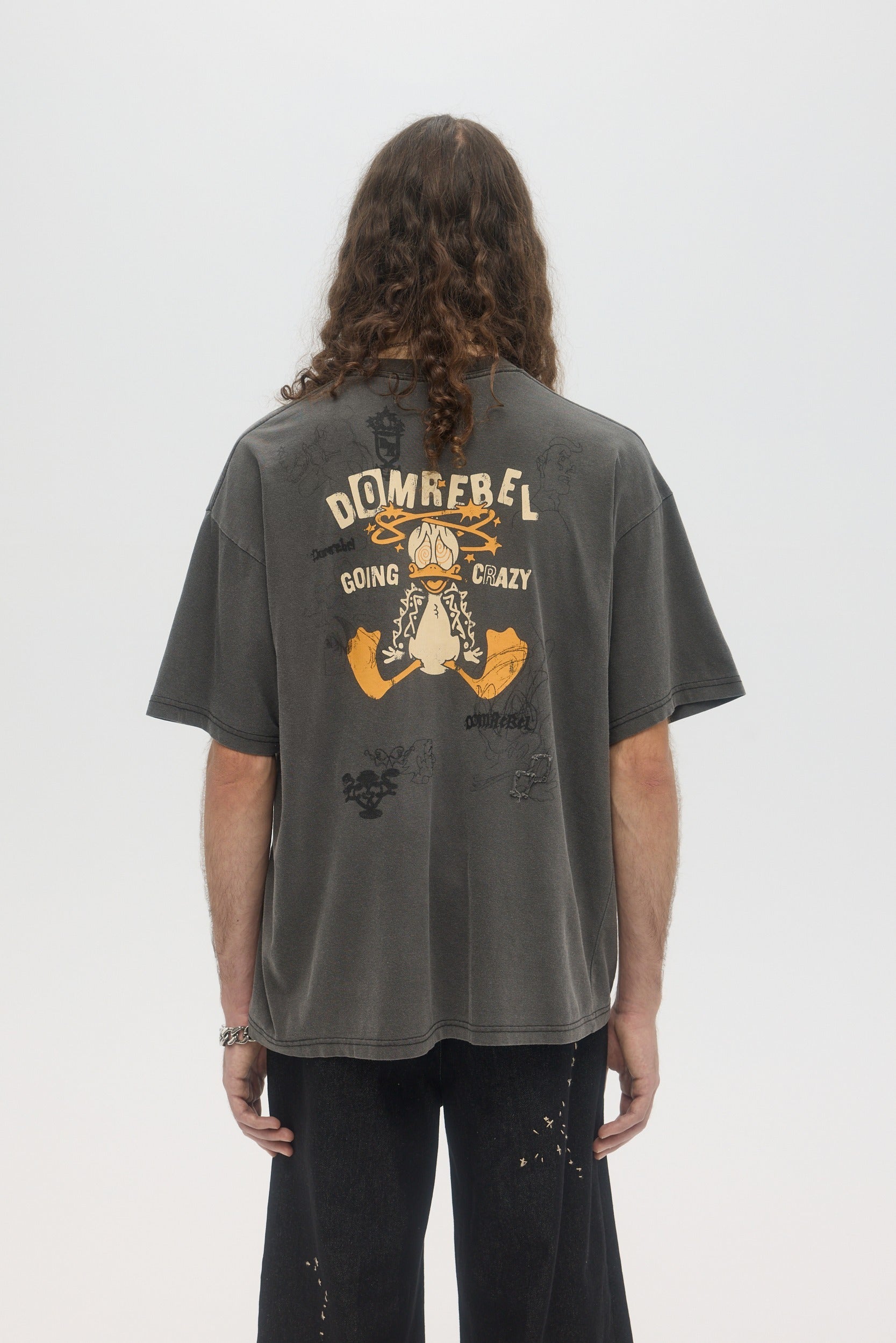 Our crowd-favorite t-shirt fit is made from custom cotton jersey, milled and constructed in Canada. Original DOMREBEL hand-drawn artworks screen-printed on front and back. We built this fit with a higher, cleaner rib neckline, and a very slight drop in the shoulder for the perfect fit. Fit is regular and true to size.