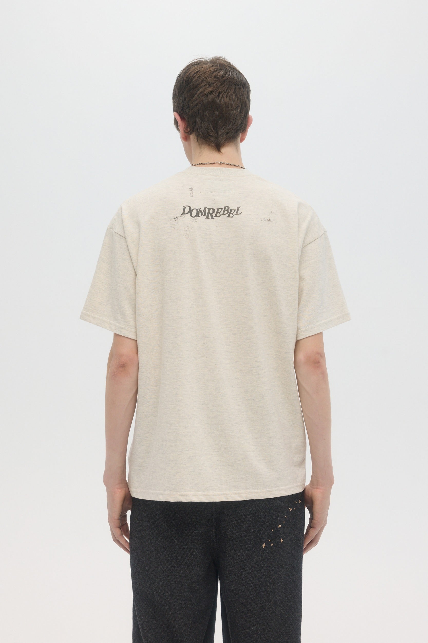 Our crowd-favorite t-shirt fit is made from custom cotton jersey, milled and constructed in Canada. Original DOMREBEL hand-drawn artworks screen-printed on front and back. We built this fit with a higher, cleaner rib neckline, and a very slight drop in the shoulder for the perfect fit. Fit is regular and true to size.