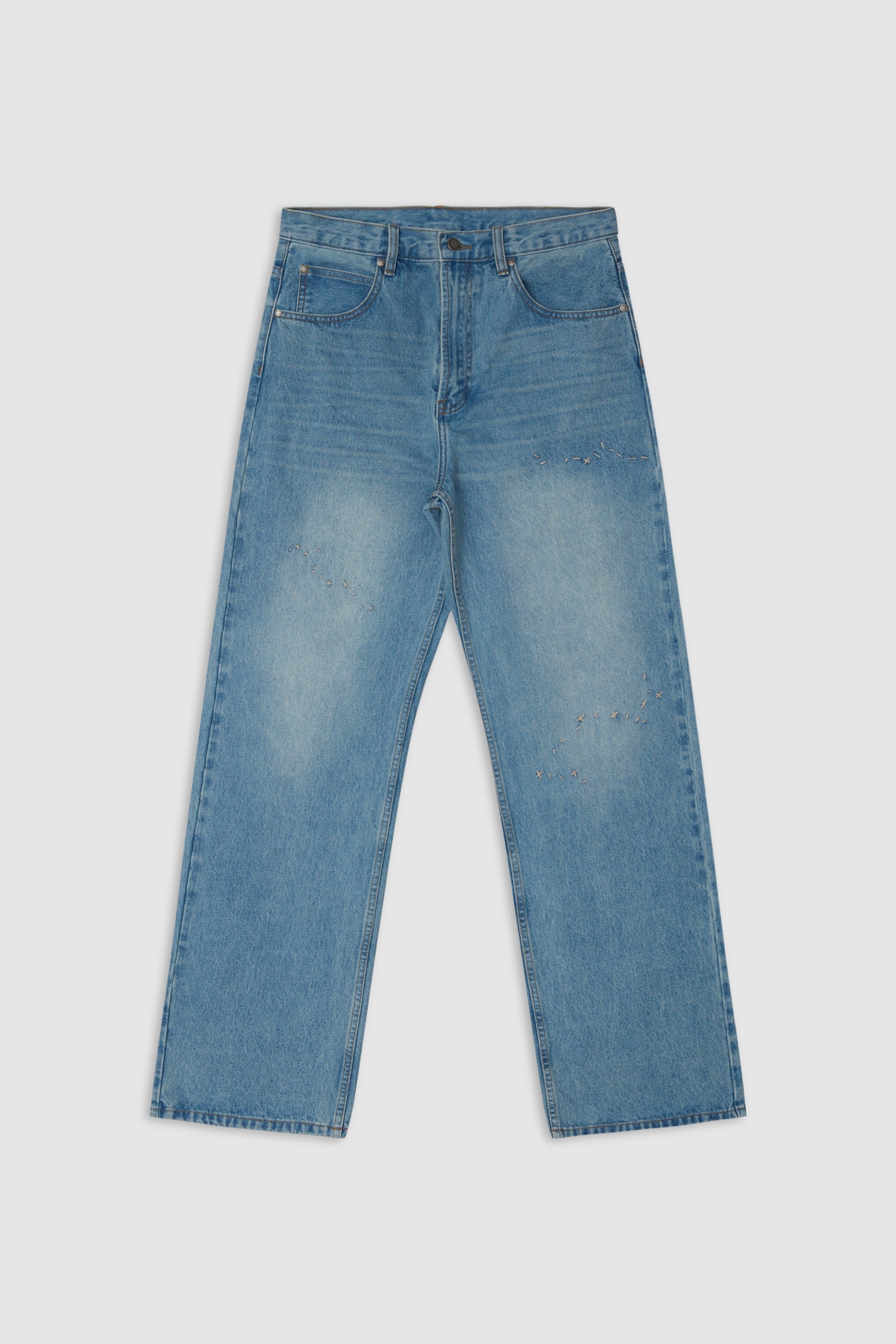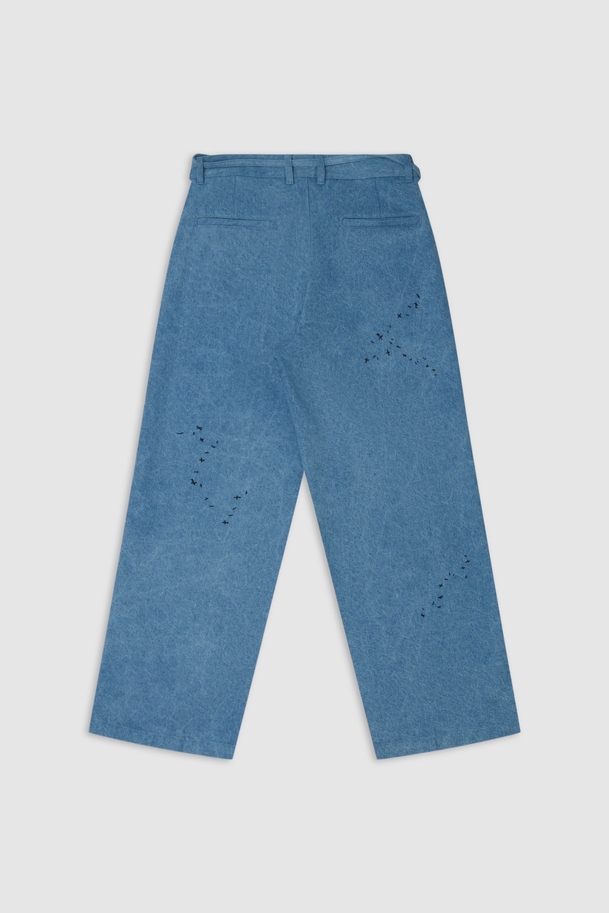 LAZY - DENIM PLEATED TROUSERS BLUE