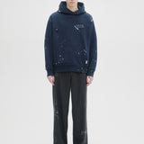 500GSM HEAVY-WEIGHT FRENCH TERRY HOODIE FEATURING PAINT SPLATTER EFFECT AND PATCHWORK APPLIQUÉS THROUGHOUT. THE "ATELIER" HOODIE SPORTS A HOOD, PRINTED "D.R.S.M." LOGO GRAPHIC, KANGAROO POCKET, AND RIB KNIT HEM AND CUFFS.