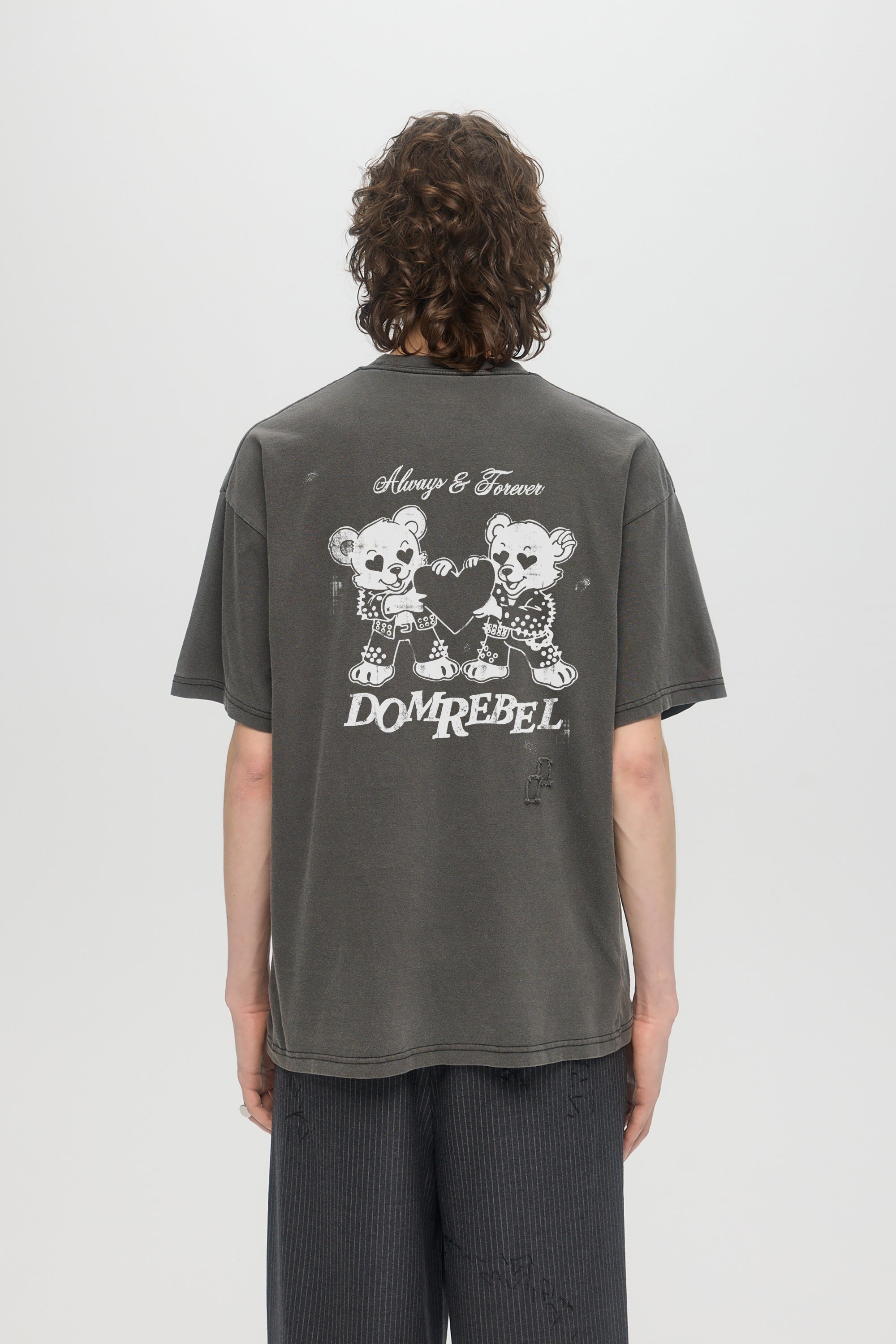 Our crowd-favorite t-shirt fit is made from custom cotton jersey, milled and constructed in Canada. Original DOMREBEL hand-drawn artworks screen-printed on front and back. We built this fit with a higher, cleaner rib neckline, and a very slight drop in the shoulder for the perfect fit. Fit is regular and true to size.