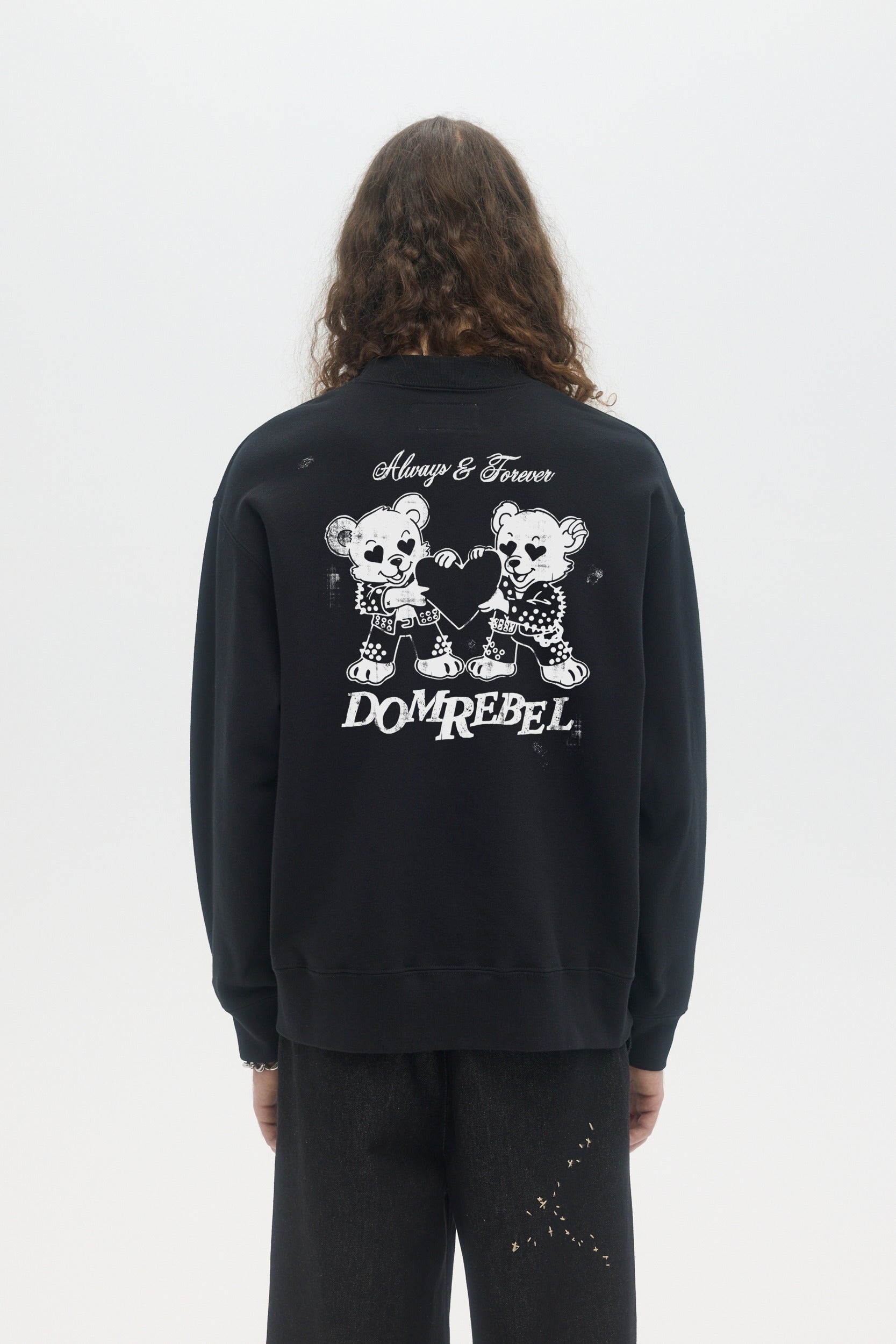 Our crowd-favorite crewneck sweatshirt fit is made from custom cotton loop-back french terry, milled and constructed in Canada. DOMREBEL studio artworks are screen-printed on the front and back. Fit is regular and true to size.