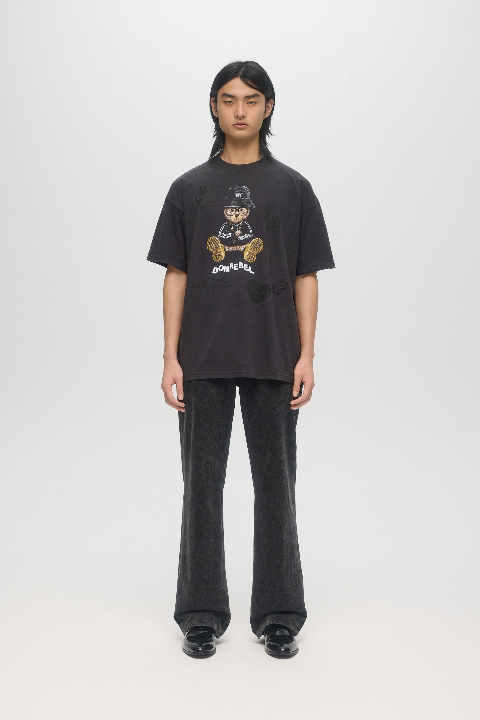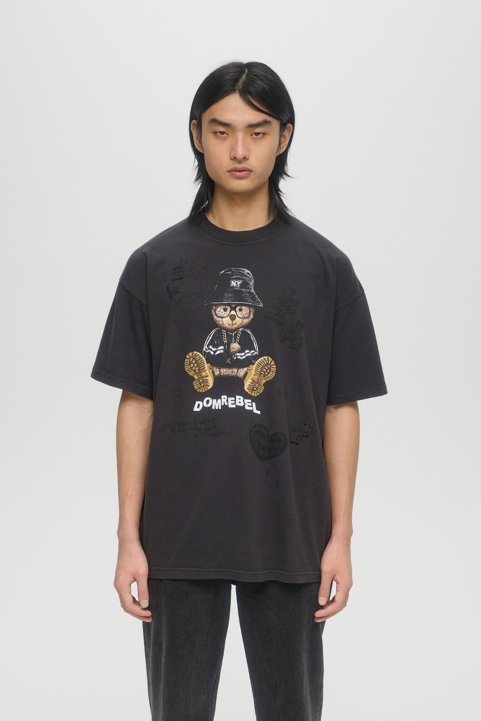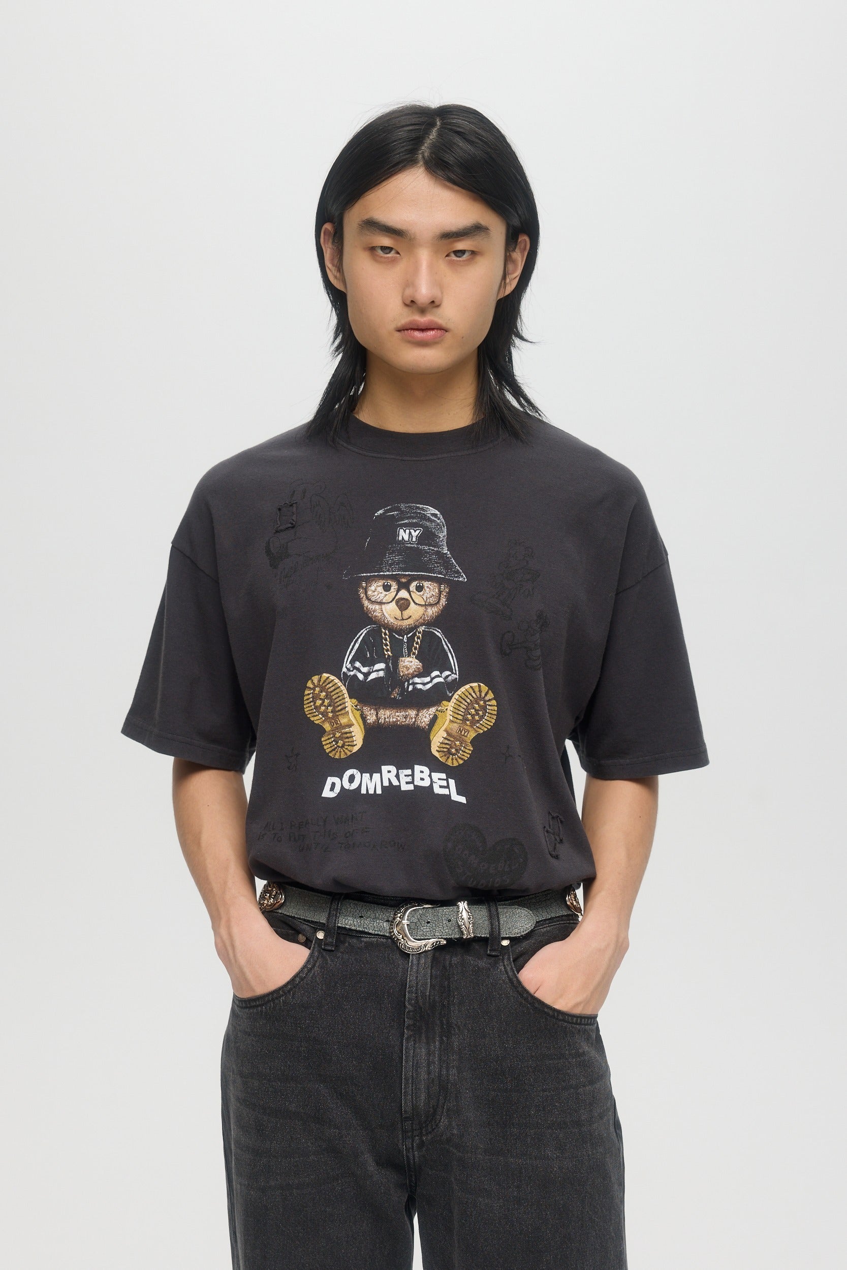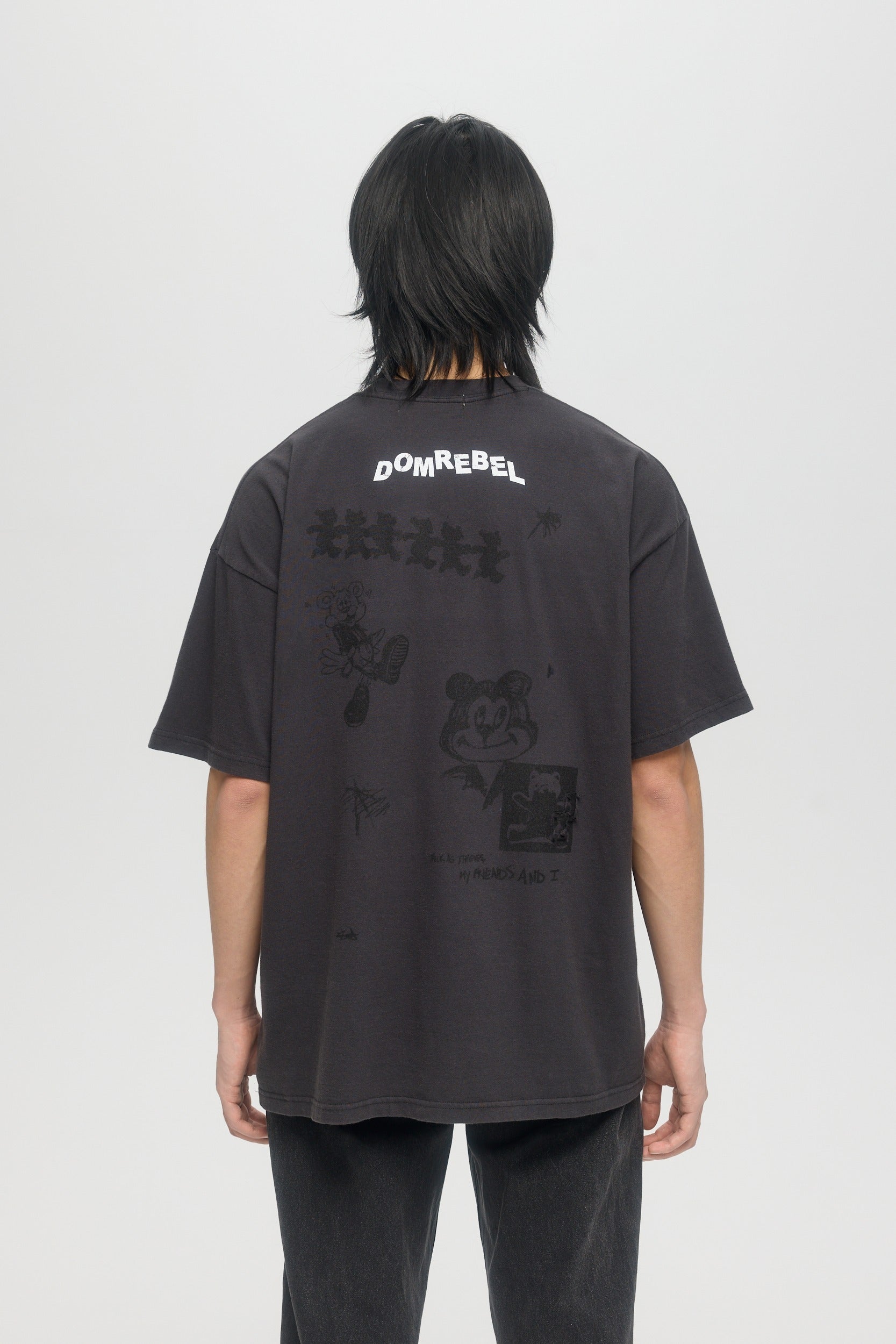 Our crowd-favorite t-shirt fit is made from custom cotton jersey, milled and constructed in Canada. Original DOMREBEL hand-drawn artworks screen-printed on front and back. We built this fit with a higher, cleaner rib neckline, and a very slight drop in the shoulder for the perfect fit. Fit is regular and true to size.