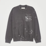 500GSM HEAVY-WEIGHT FRENCH TERRY SWEATSHIRT FEATURING PAINT SPLATTER EFFECT AND PATCHWORK APPLIQUÉS THROUGHOUT. THE "MAL" SWEATSHIRT SPORTS A RIB KNIT CREWNECK, HEM, AND CUFFS, AND PRINTED DOMREBEL DUCK CHARACTER ARTWORK AT FRONT AND BACK.