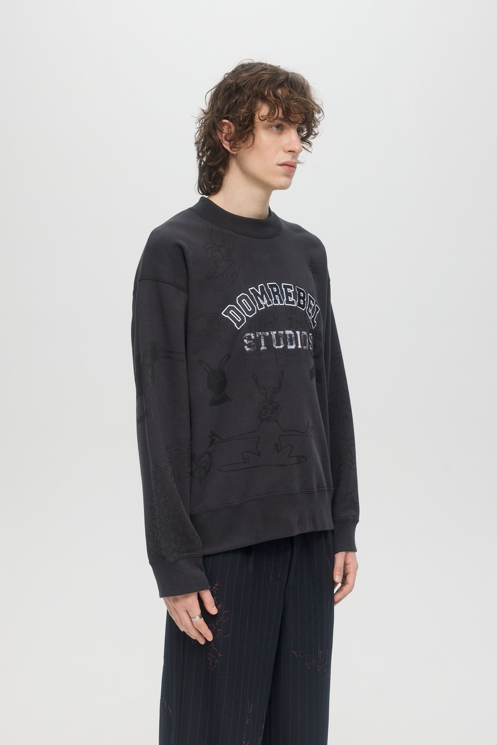 Our crowd-favorite crewneck sweatshirt fit is made from custom cotton loop-back french terry, milled and constructed in Canada. DOMREBEL studio artworks are screen-printed on the front and back. Fit is regular and true to size.