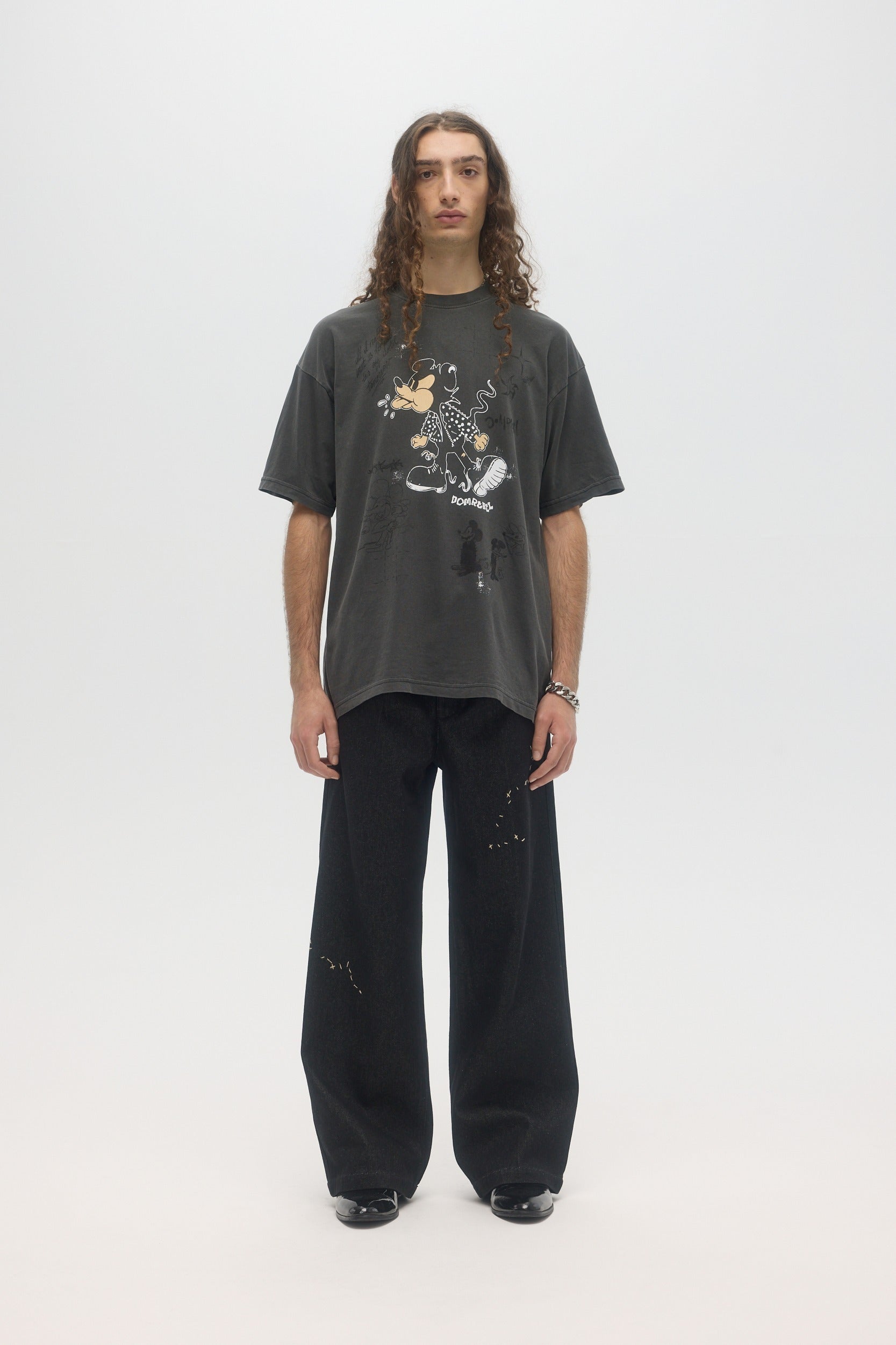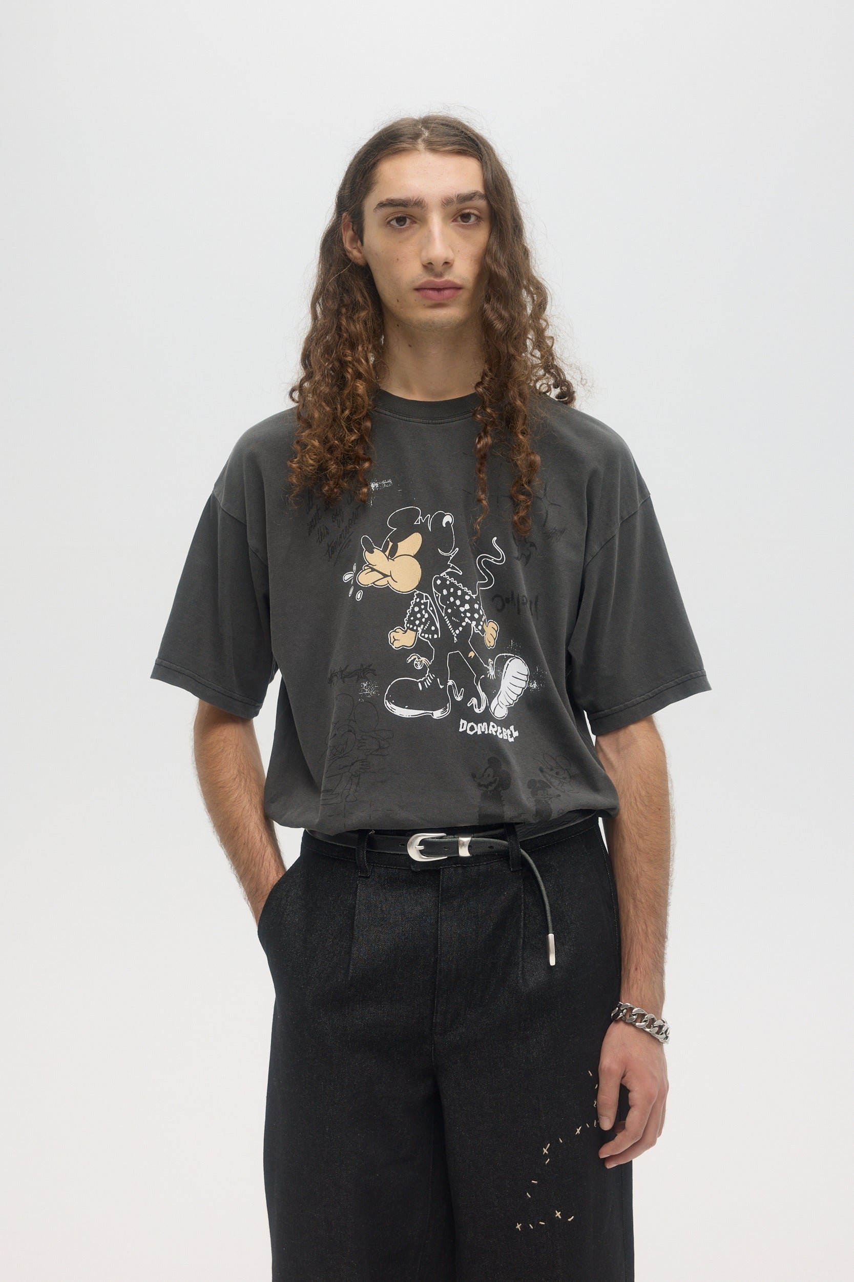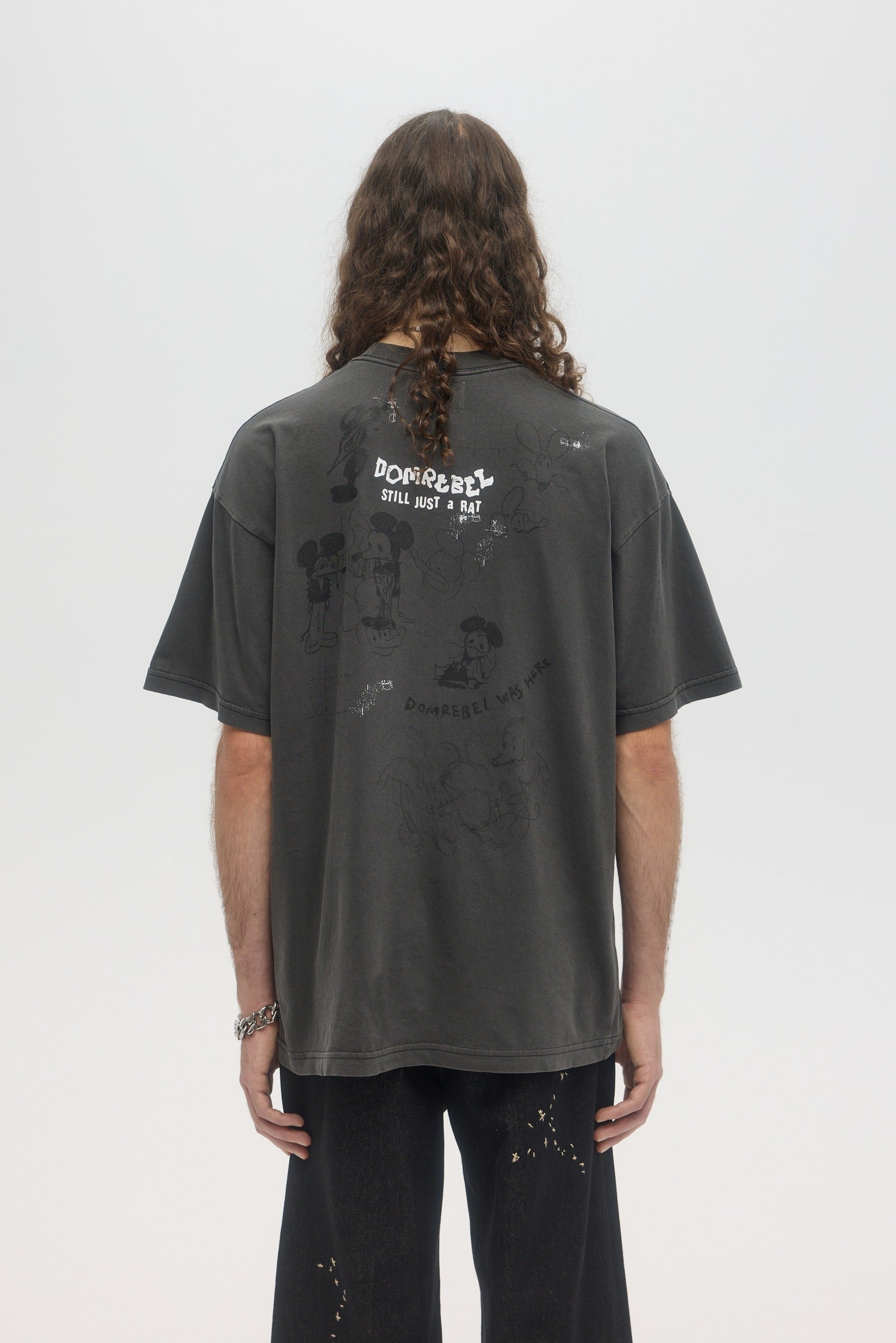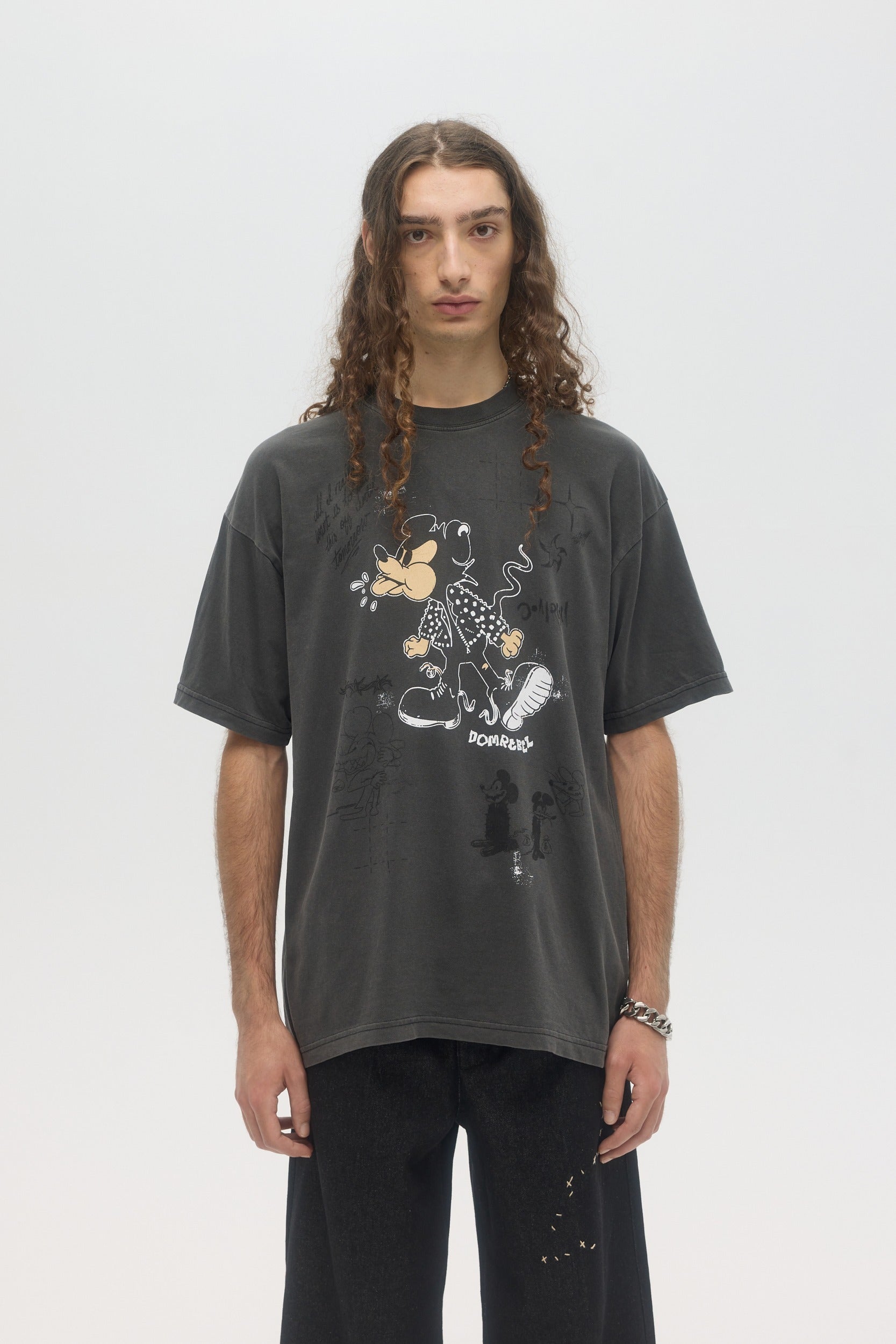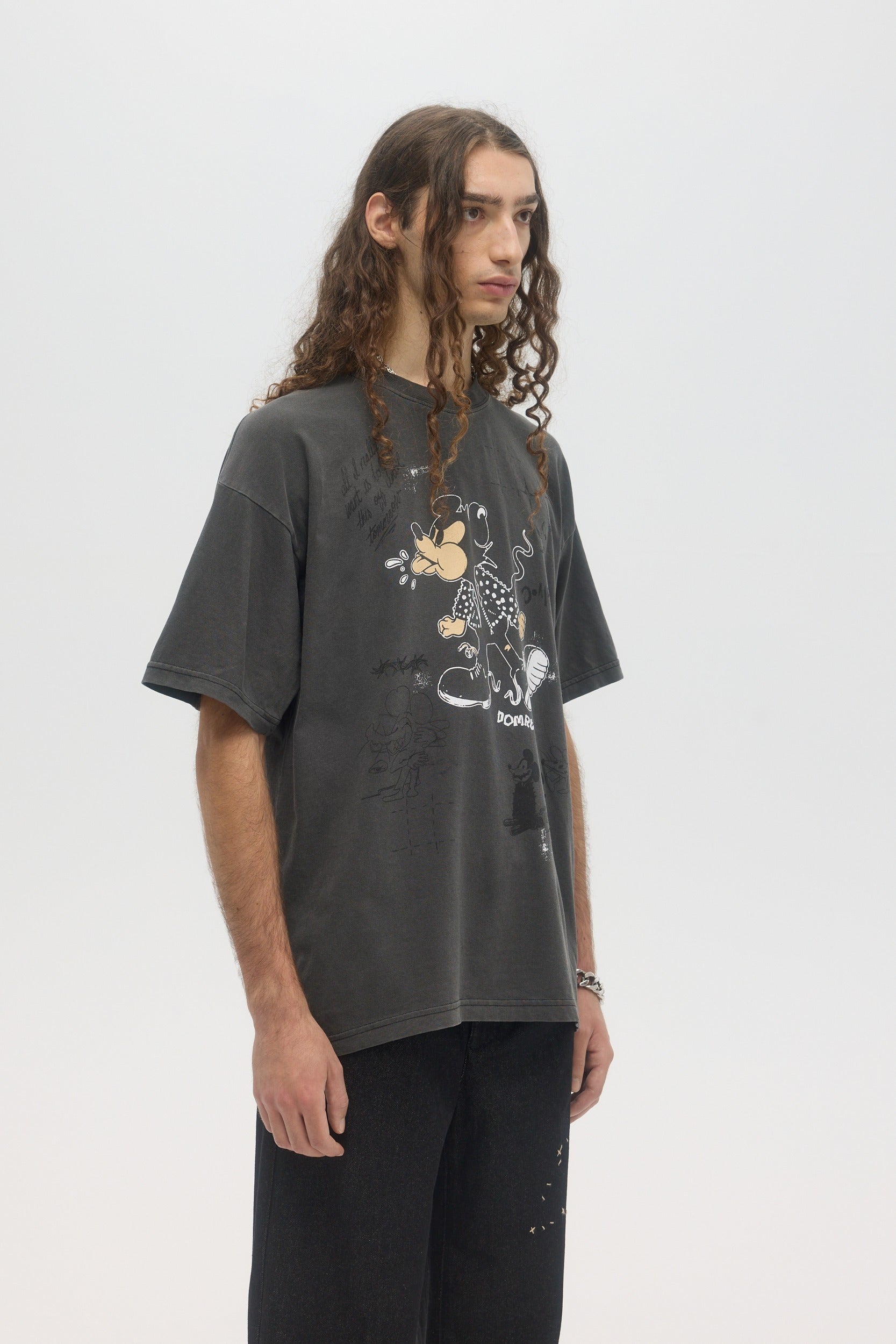 Our crowd-favorite t-shirt fit is made from custom cotton jersey, milled and constructed in Canada. Original DOMREBEL hand-drawn artworks screen-printed on front and back. We built this fit with a higher, cleaner rib neckline, and a very slight drop in the shoulder for the perfect fit. Fit is regular and true to size.