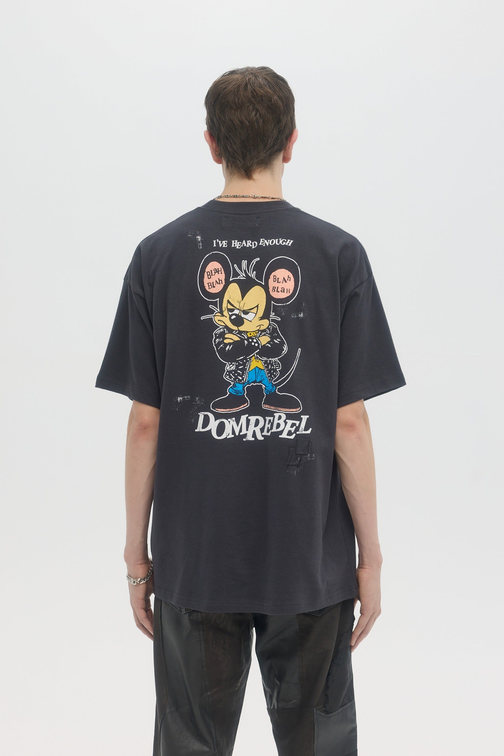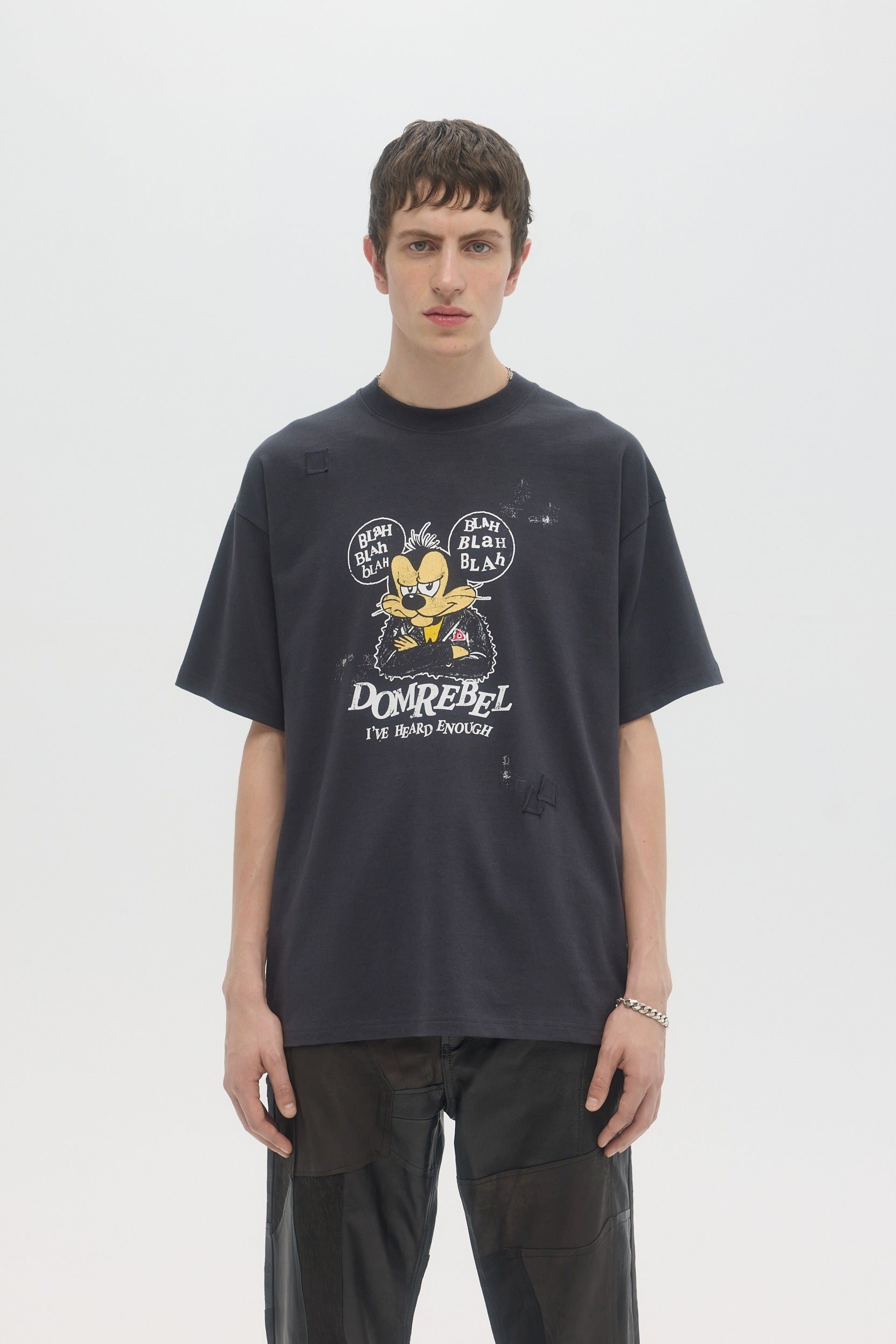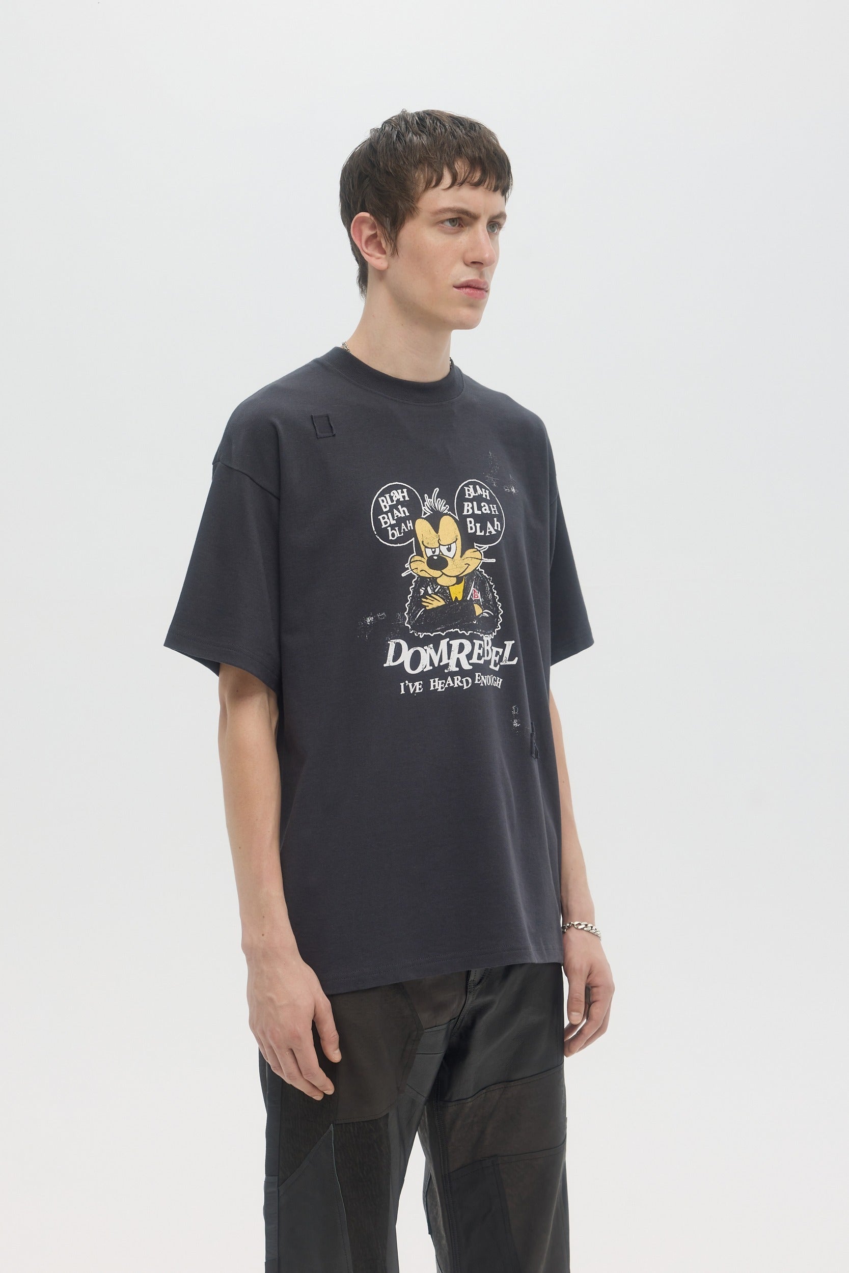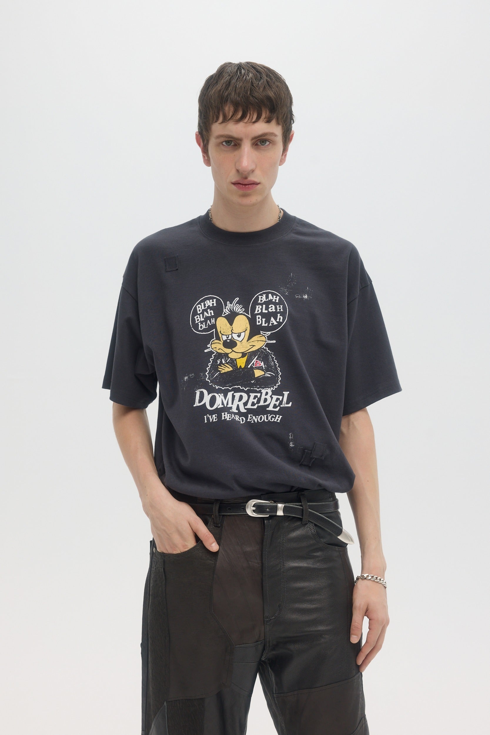 Our crowd-favorite t-shirt fit is made from custom cotton jersey, milled and constructed in Canada. Original DOMREBEL hand-drawn artworks screen-printed on front and back. We built this fit with a higher, cleaner rib neckline, and a very slight drop in the shoulder for the perfect fit. Fit is regular and true to size.