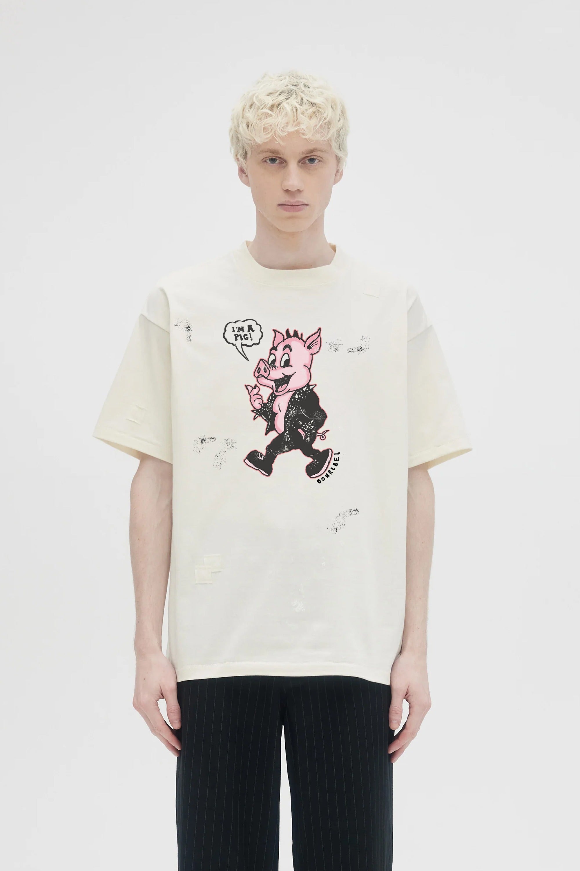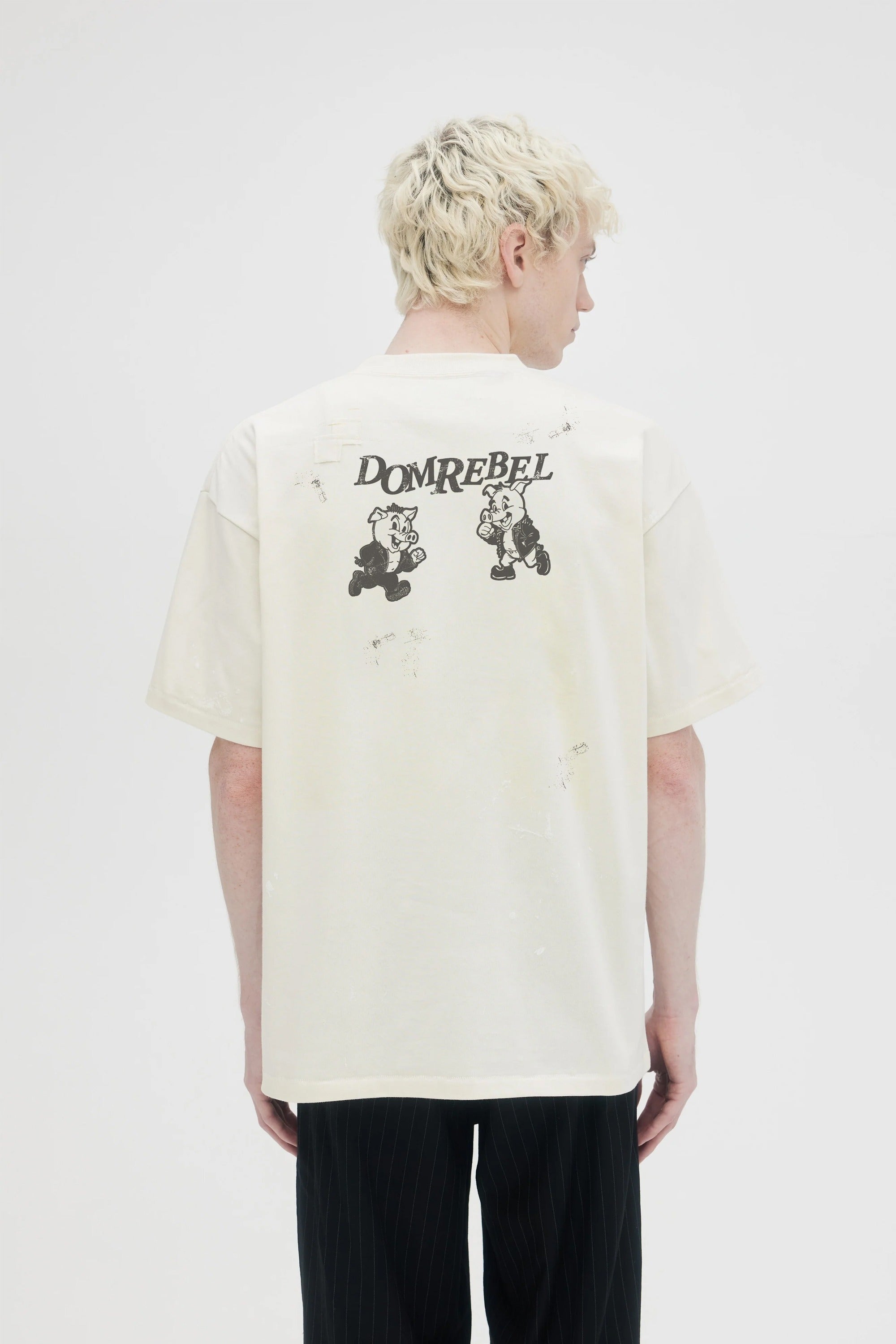 Our crowd-favorite t-shirt fit is made from custom cotton jersey, milled and constructed in Canada. Original DOMREBEL hand-drawn artworks screen-printed on front and back. We built this fit with a higher, cleaner rib neckline, and a very slight drop in the shoulder for the perfect fit. Fit is regular and true to size.