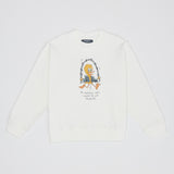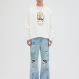 REGULAR FIT CREWNECK SWEATSHIRT FEATURING FRONT PRINT OF DOMREBEL duck CHARACTER jumping rope with barbed wire, AND BACK COMIC PANEL PRINT. MADE FROM 500GSM HEAVY FRENCH TERRY RINGSPUN COTTON FABRIC, MILLED IN TORONTO AND PRINTED IN MONTRÉAL, CANADA. WE RECOMMEND WASHING INSIDE OUT AND HANGING TO DRY.